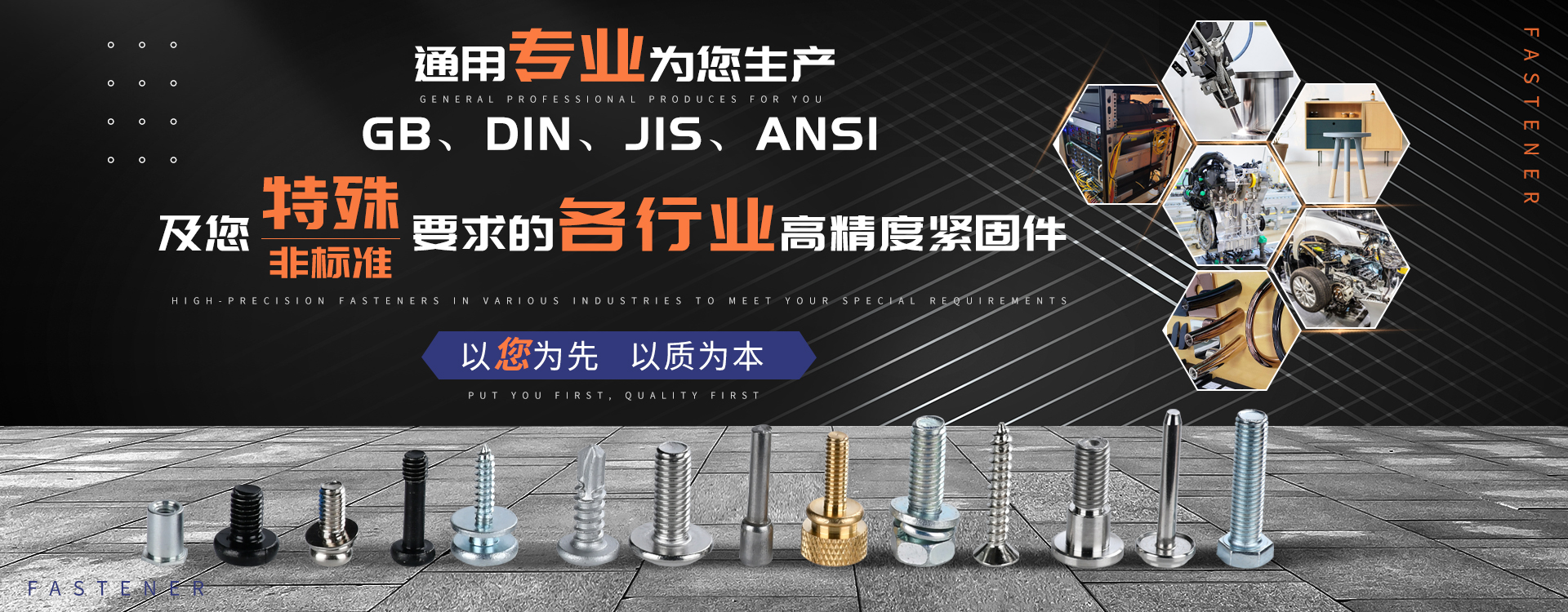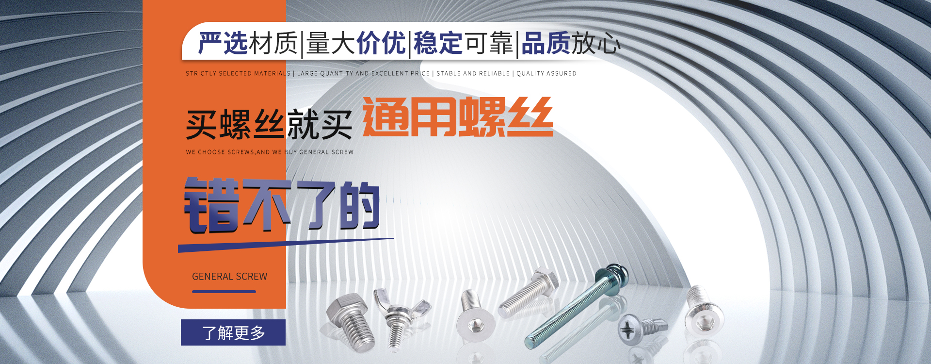 中山市通用螺絲制造有限公司成立于1987年,工廠坐落于廣東四小虎之一的中山市,北連廣州,毗鄰港澳。總占地面積14000m 2,足有兩個足球場。我司于1998年通過德國萊茵TUV ISO9002認(rèn)證,于2002年通過TUV ISO9001:2000認(rèn)證。2008年通過ISO 14000認(rèn)證。我司主營自攻螺絲、組合螺絲、機械螺絲、防松螺絲等標(biāo)準(zhǔn)和非標(biāo)準(zhǔn)件,我司既可按客戶的要求提交所需的產(chǎn)品,也可以為客戶量身定做所需產(chǎn)品。我司擁有專業(yè)的產(chǎn)品檢測隊伍和投影分析儀、金相、硬度計(韋氏和洛氏)、扭矩力測試計等完善的檢測設(shè)備,為電子、電器、五金塑料、衛(wèi)浴、家具、機械、汽配等行業(yè)提供符合歐盟質(zhì)量、環(huán)保要求的產(chǎn)品。2006年,我司自主開發(fā)的ERP管理系統(tǒng),使我們的生產(chǎn)和服務(wù)效率得到了極大的提高。 經(jīng)過三十多年地摸爬滾打,依靠眾多新老顧客的支持,通用螺絲逐漸成長為國內(nèi)知名的緊固件供應(yīng)商。了解更多 >>